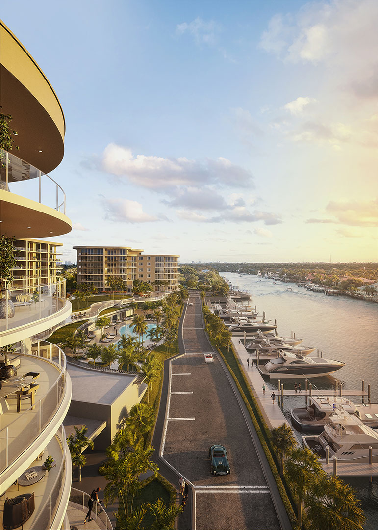 Posicionado na Intracoastal Waterway (via navegável costeira), o The Ritz-Carlton Residences, Palm Beach Gardens redefine a vida de luxo na marina no Sul da Flórida. Criamos renderizações de interior e exterior, animações, um cinemagraph, e uma campanha sazonal para capturar a elegância e o calmo estilo de vida costeiro desta comunidade exclusiva de 106 residências.
